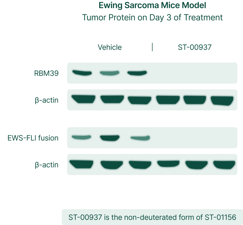 ST-01156 is an orally administered, brain-penetrant, selective small-molecule degrader of RBM39 designed to eliminate oncogenic RNA-splicing dependencies across multiple tumor types.